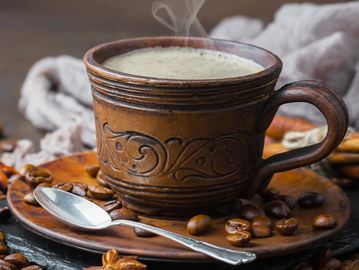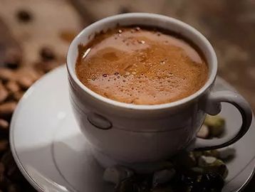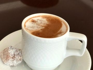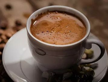 Özenle taş dibekte dövülmüş kahve, taze ve köpüklü servis edilir.